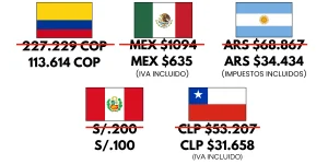 El valor puede tener una leve variación de acuerdo al movimiento del dólar en cada país.